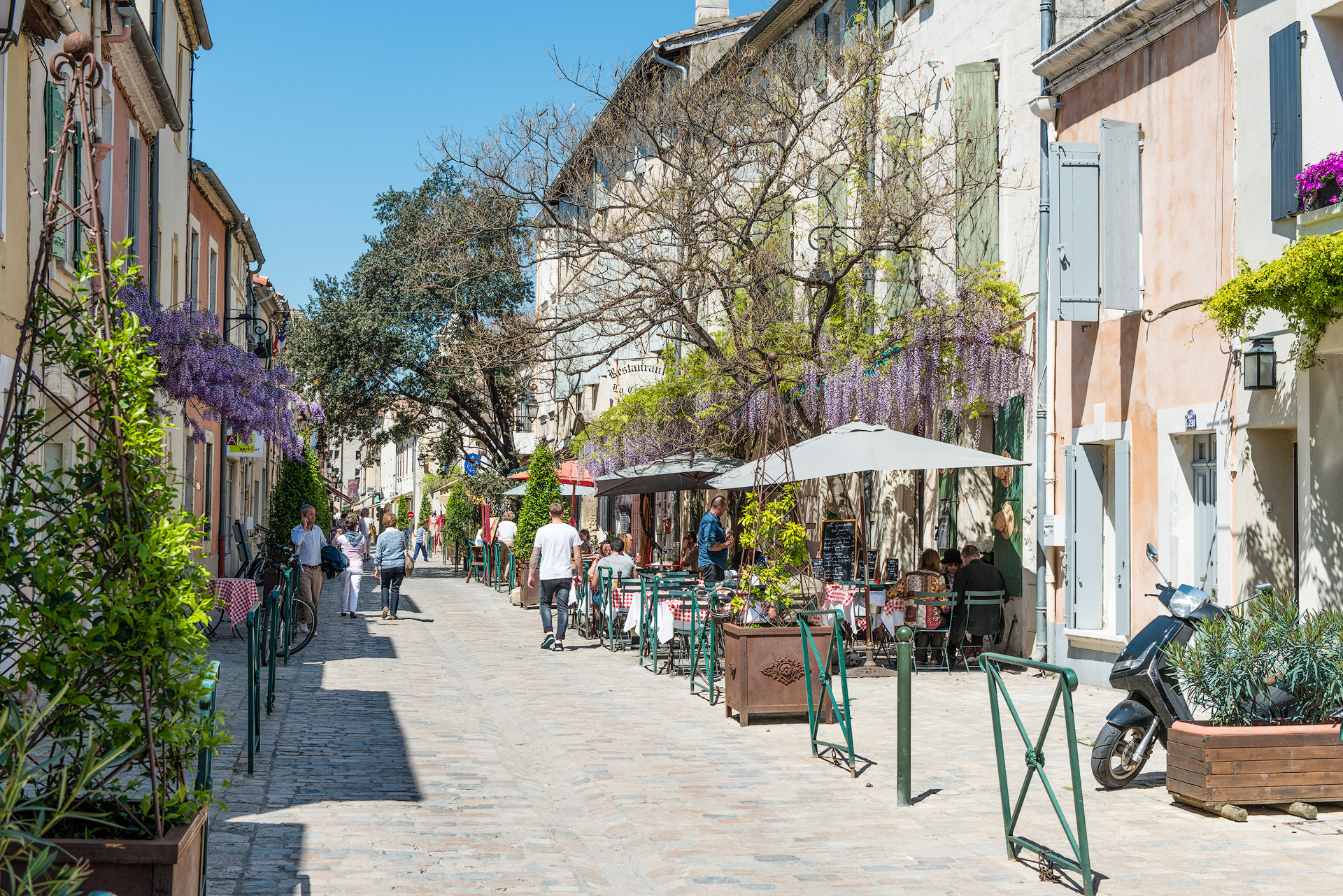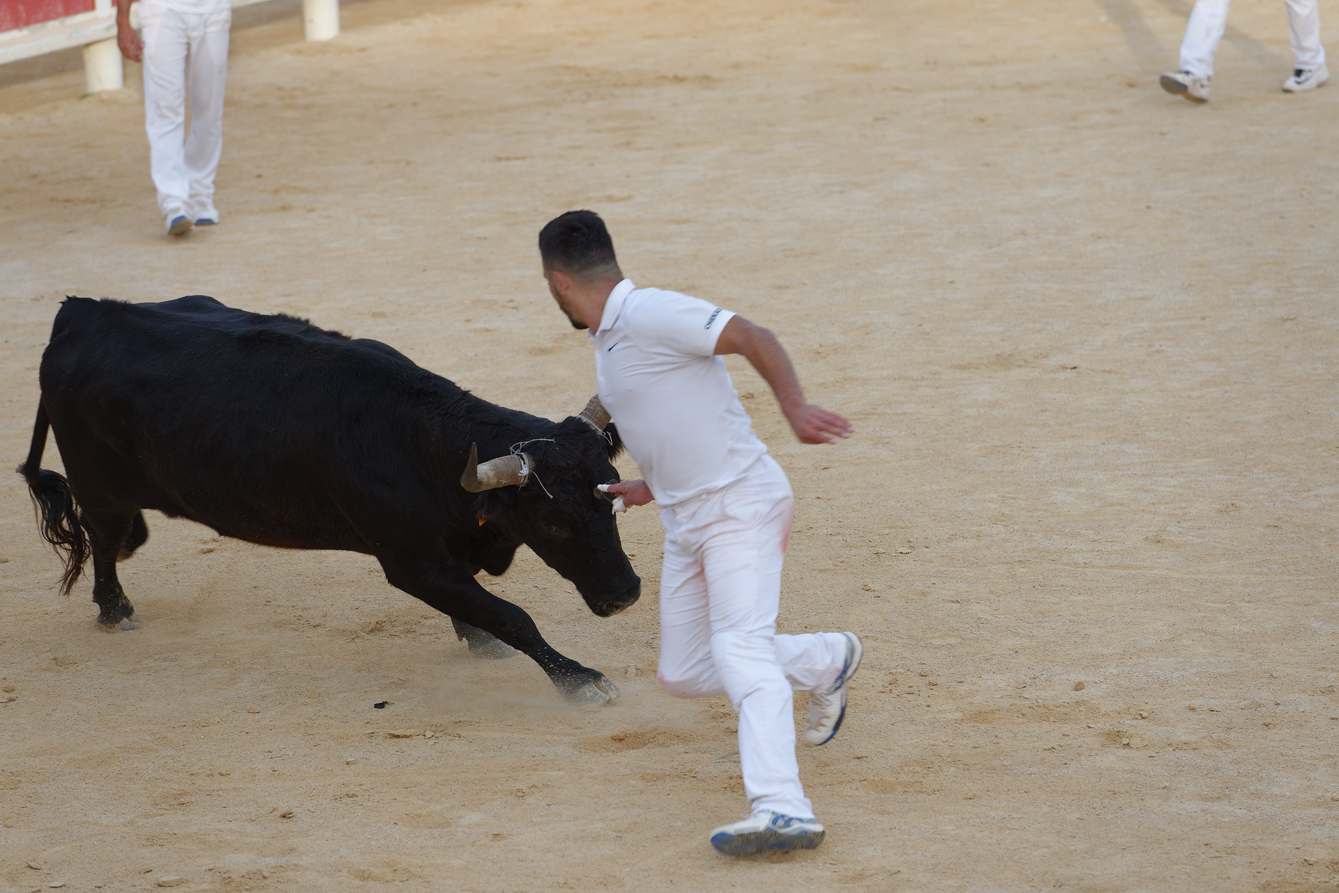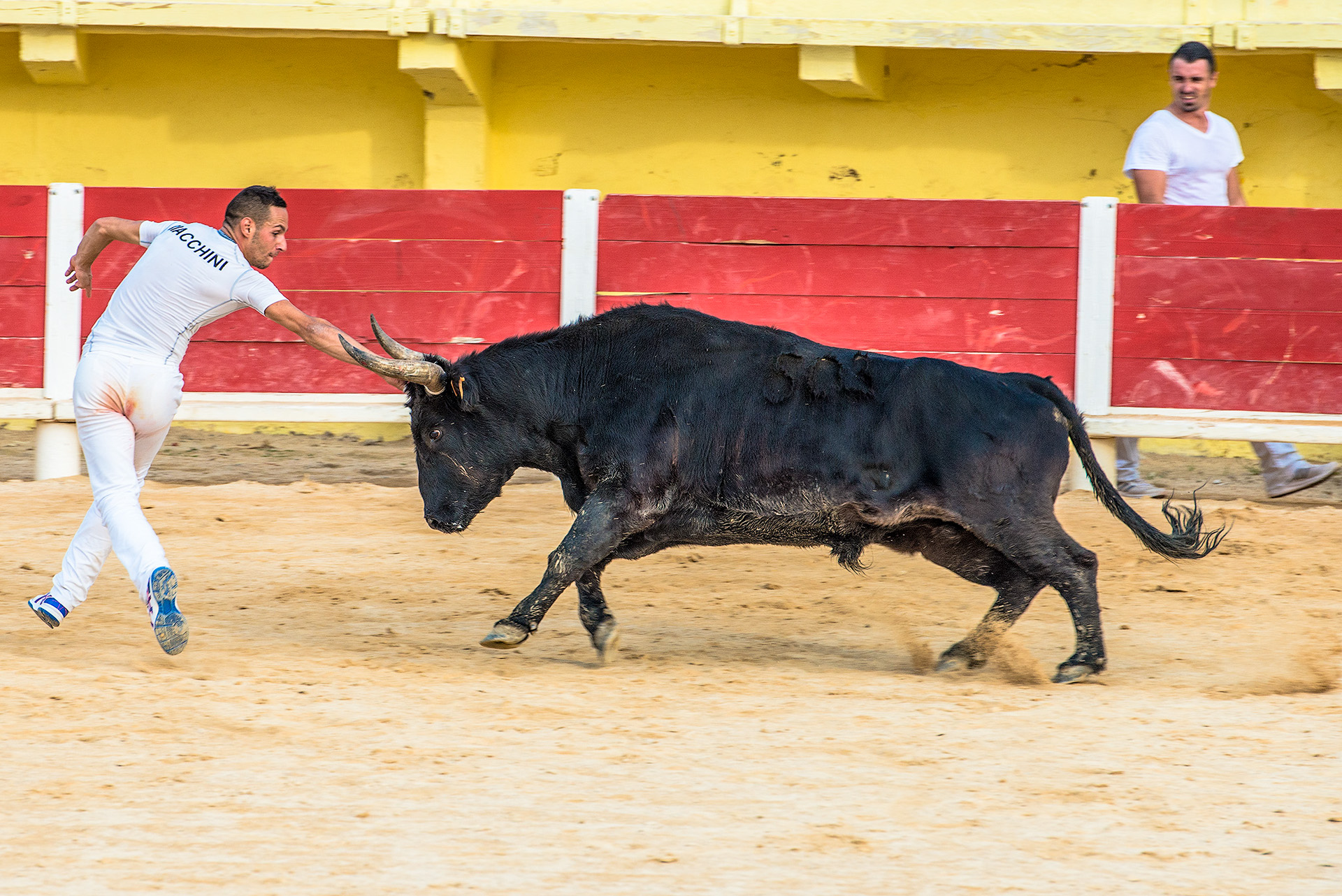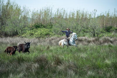Zu Gast auf der Manade Arnaud; Camarguepferde und -stiere; Stierkampfarena Saintes-Maries-de-la-Mer; Razeteure im Einsatz in der Arena; Stierhüter 'Gardiens' zu Pferd; grosses Naturschutzgebiet mit grössten Feuchtreservaten in Europa (inkl. Mücken); Aigues mortes; Montpellier; Arles; Les Baux-de-Provence; Carrières-de-Lumières; Le Grau-du-Rois